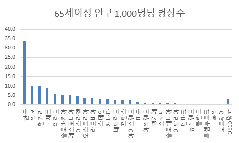 그래서 나타나는 현상은 요양병원의 폭증이다. 우리나라 장기요양보험의 경우 원칙적으로 1, 2등급에서 시설이용이 가능한데 장기요양보험 전체 대상자 수는 80만명까지 늘어나도 1, 2등급은 10만명대에서 억제되어왔다. 그러다보니 요양병원이 대체수단으로 활용되게 되었고, 그 결과 우리나라 요양병원의 병상 수는 다른 OECD 국가 평균의 10배가 넘는 기형적인 상태에 이르렀다[그림 2]. 덩달아 증가하게 된 것은 이른바 ‘사회적 입원’이다. 의료적으로 입원이 필요하지 않아도 단지 돌봐줄 사람이 없어서 어쩔 수 없이 입원을 하게 되는 것이다. 보건복지부의 추산에 따르면 의학적으로 입원이 필요로 하지 않은데 요양병원에 입원한 환자 수는 12~17만명으로 전체 요양병원 입원자의 40% 정도에 이른다(홍준기, 2020).